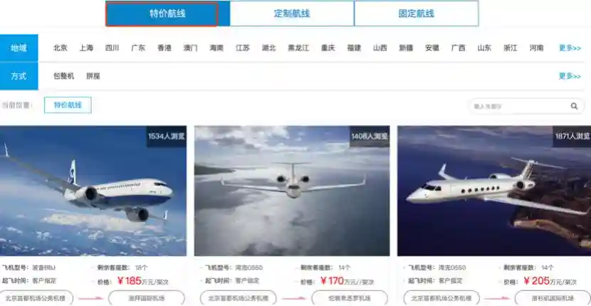 iFlyPlus爱飞嘉、私人飞机网等平台经常会发布关于特价包机的信息。例如平时一趟上海飞三亚的航班要40多万,特价航班只需要10万元。飞机上能坐十几个人,相当于一个人不到1万元。