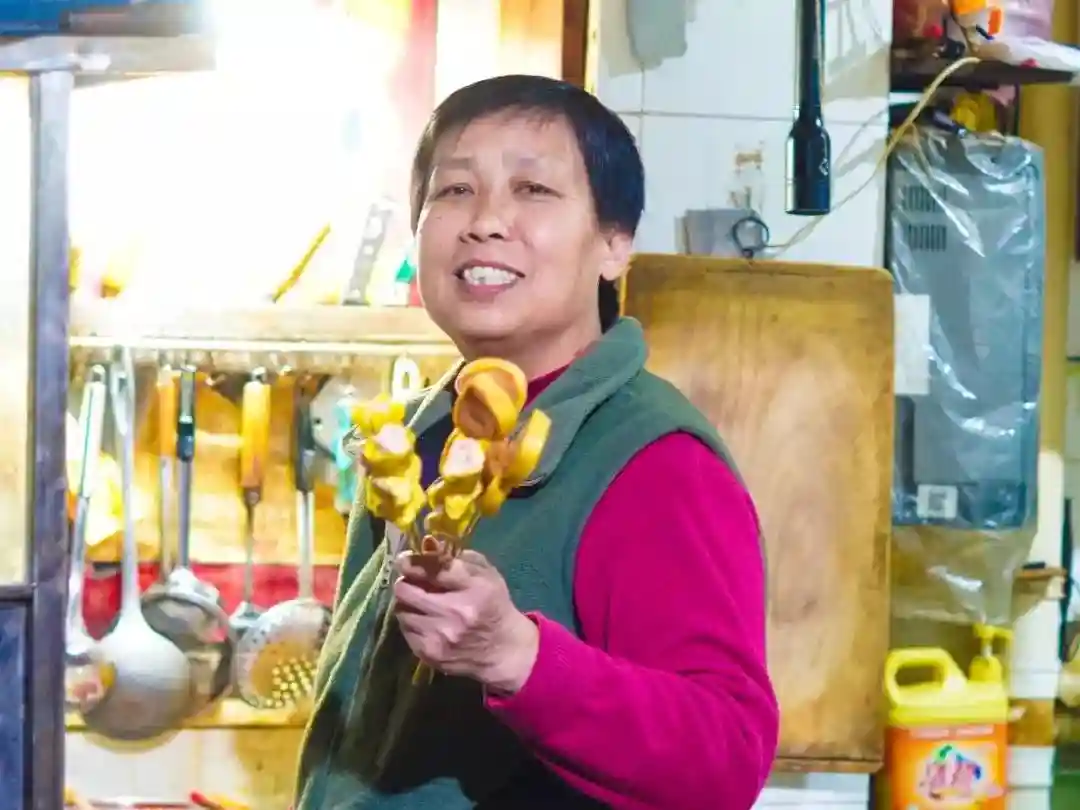 打从出摊起,串姨就卖两种串,煮的和炸的。发展到今天,串姨店里有五六十种,除了煮的炸的,还有年糕、豆沙、鲜奶,鸡柳……“我们用的食材保证新鲜,油也绝对是好油。”串姨说,自己干的是良心买卖,要让食客们吃得放心,在原材料上一点马虎不得。不同的食材还要区别对待,“像是春卷、烧麦,炸的时间就得长一些,鸡肉、鱼豆腐就得短一些,这样炸出来口感才好。”
